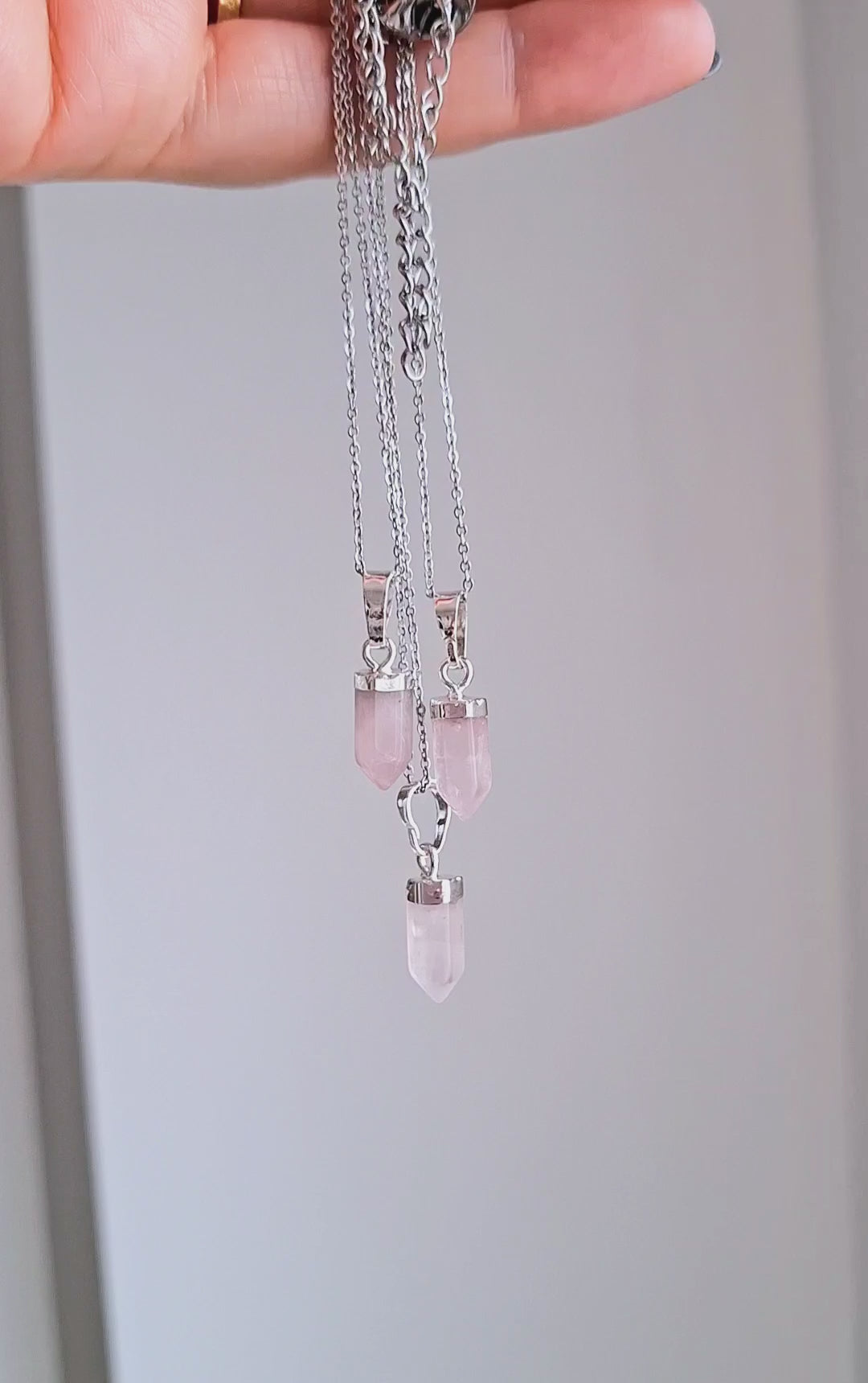 Ate is a necklace with an amethyst, rose quartz, obsidian or clear quartz pendant. It's the ultimate piece to spruce up your outfit or to give as a gift to your gem of a friend!