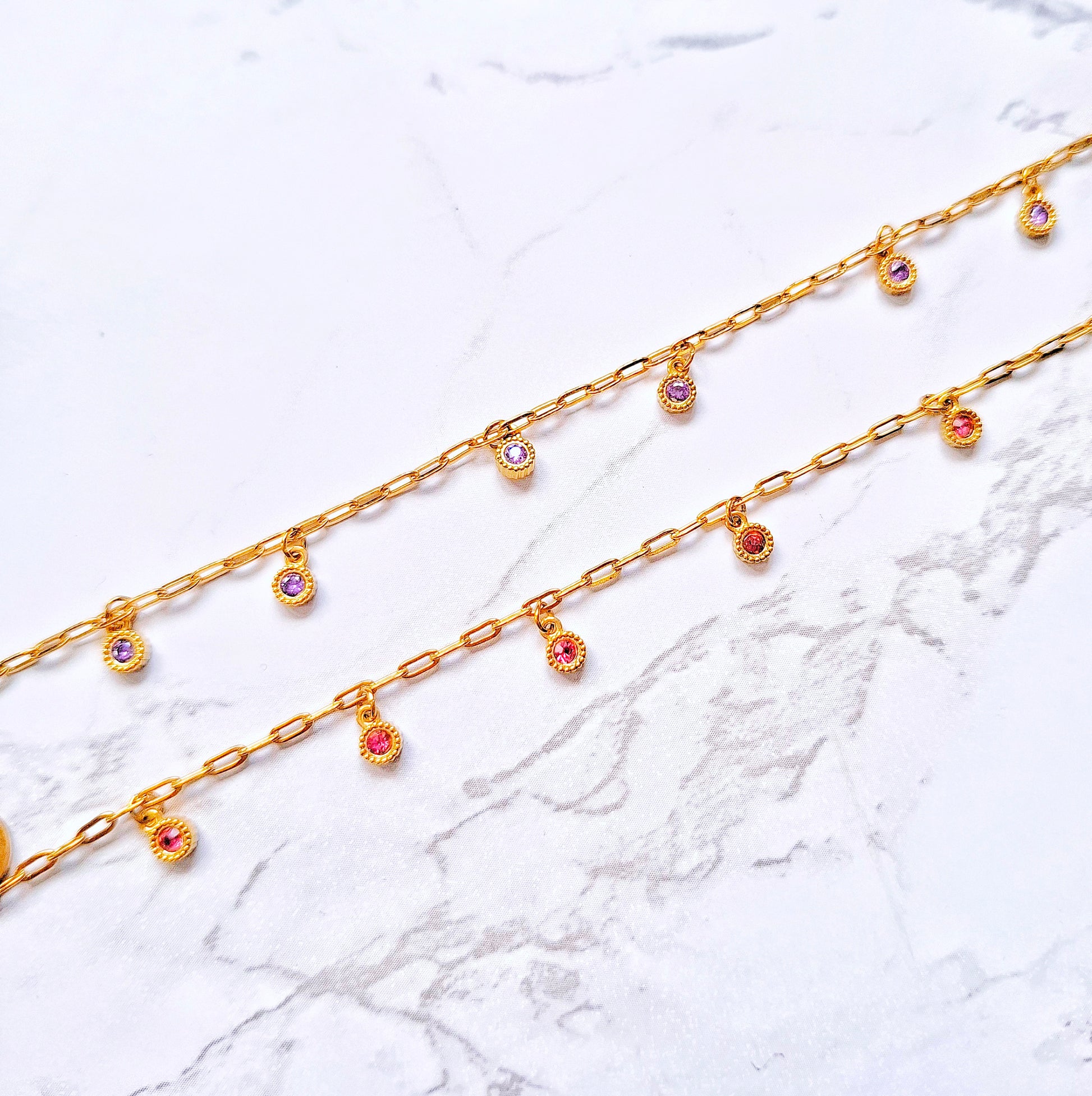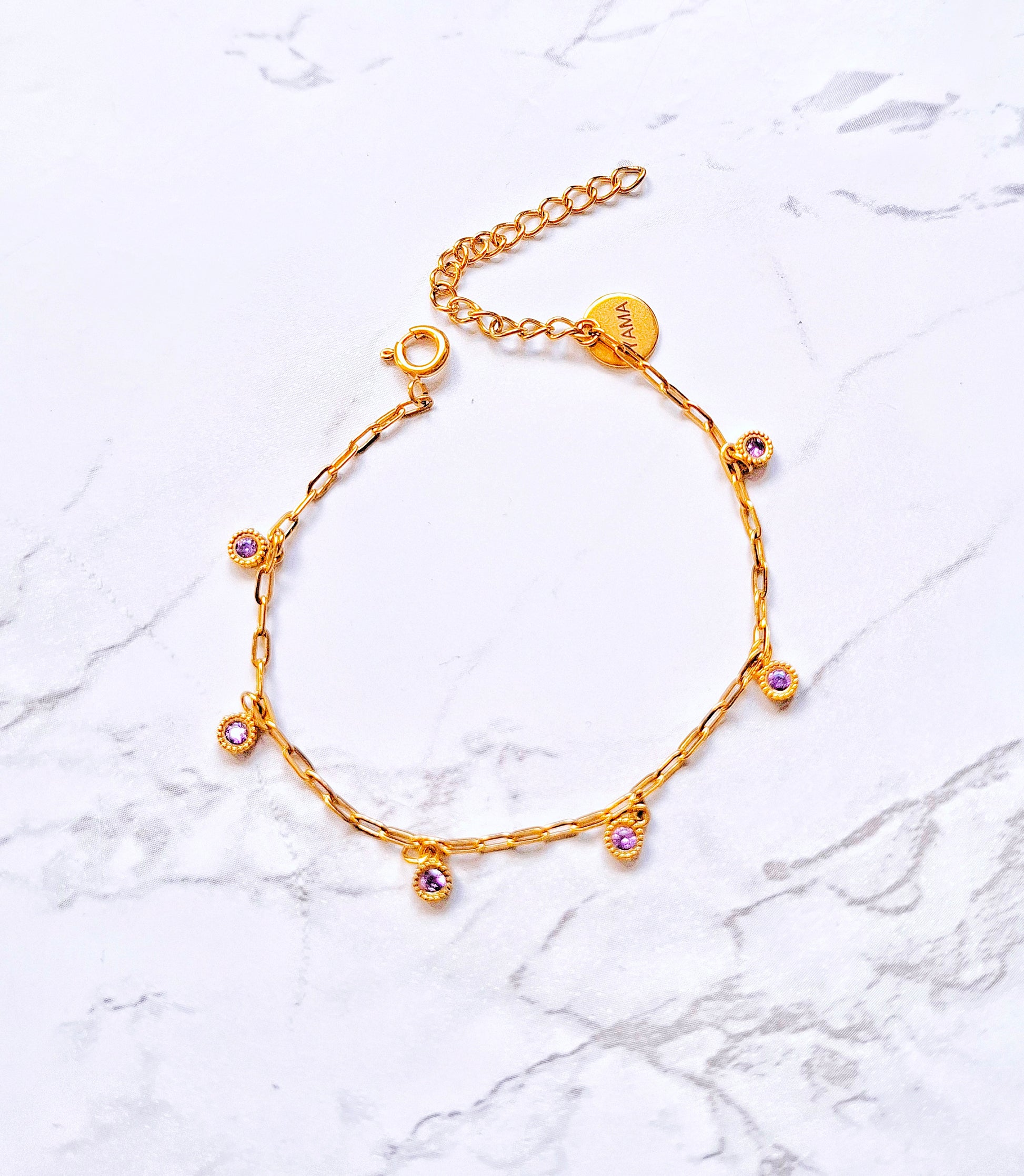 Get your hands on the Lori Amethyst bracelet. It is made with tiny Amethyst charms. It's the ultimate piece to spruce up your outfit or to give as a gift to your gem of a friend!