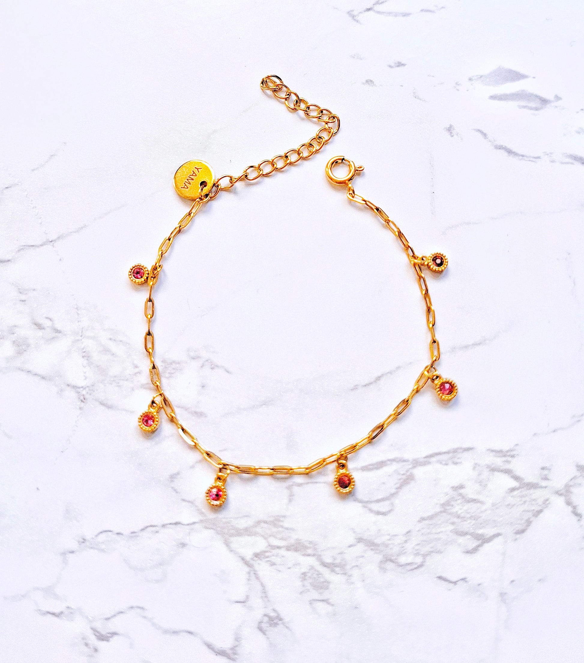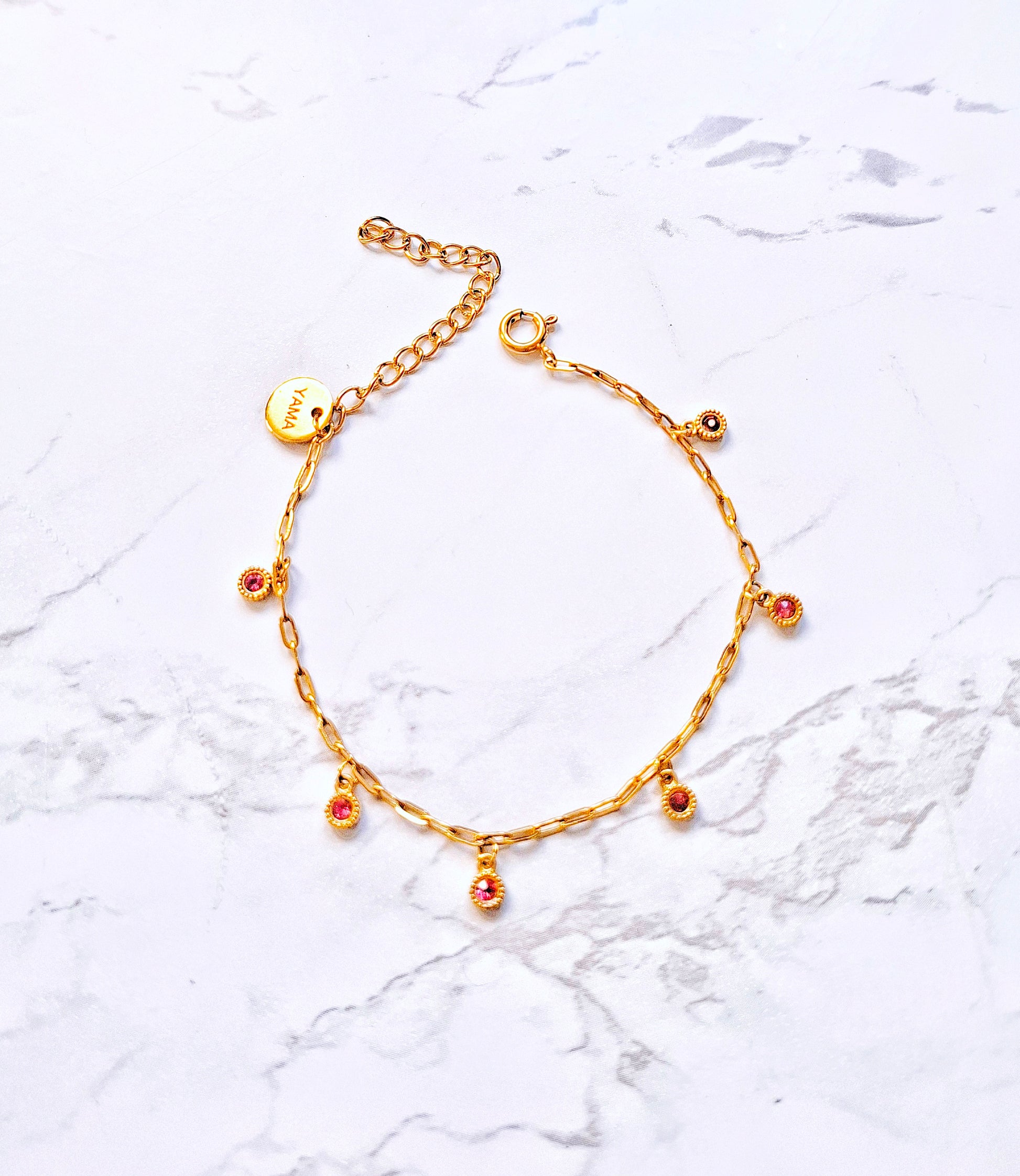 Get your hands on the Lori Pink Tourmaline bracelet. It is made with tiny Pink Tourmaline charms. It's the ultimate piece to spruce up your outfit or to give as a gift to your gem of a friend!