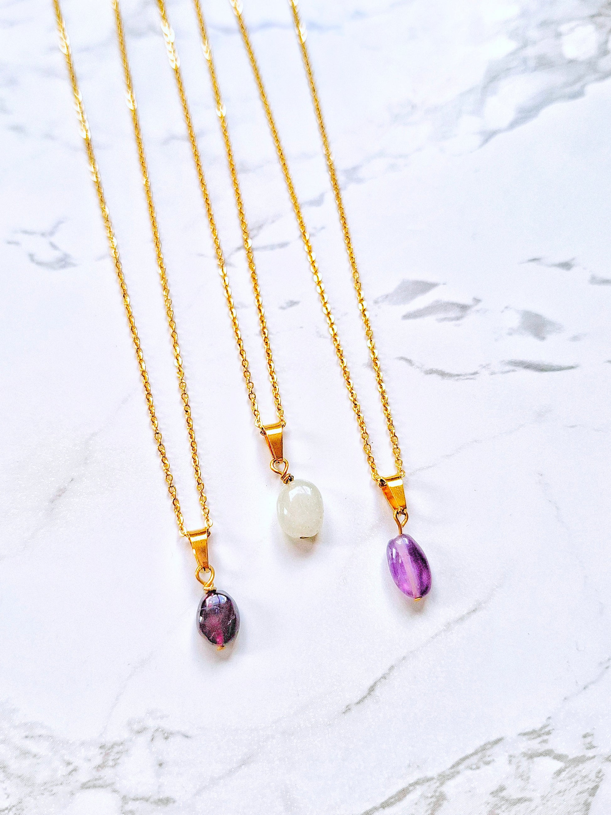 Our jewellery is crafted with natural crystals, pearls, and shells, making each piece unique in shape, colour, and size.