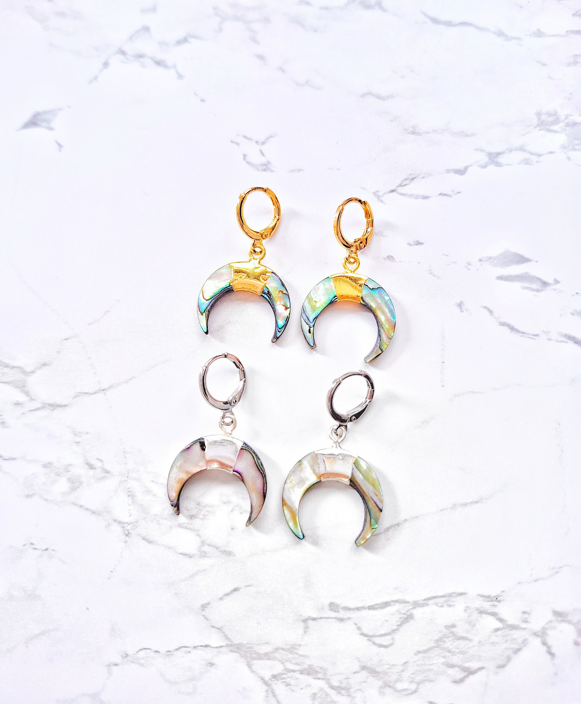 Raba is a pair of hoop earrings with abalone pendants. It's the ultimate pair to spruce up your outfit or to give as a gift to your gem of a friend!