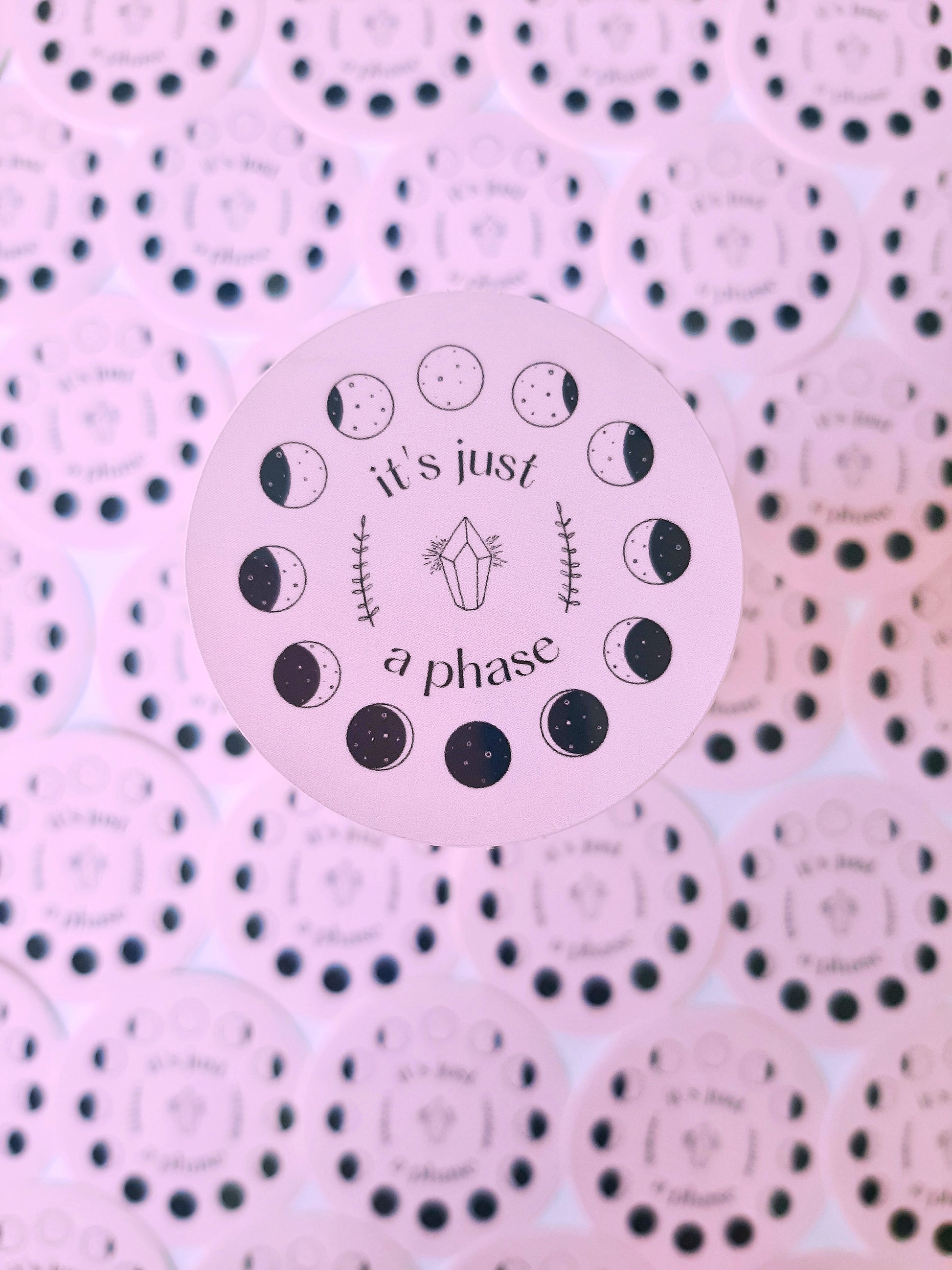 Shop the moon phases sticker here! It's the ultimate piece to spruce up your water bottle, notebook or whatever you like to put stickers on! Or give it as a gift to your gem of a friend!