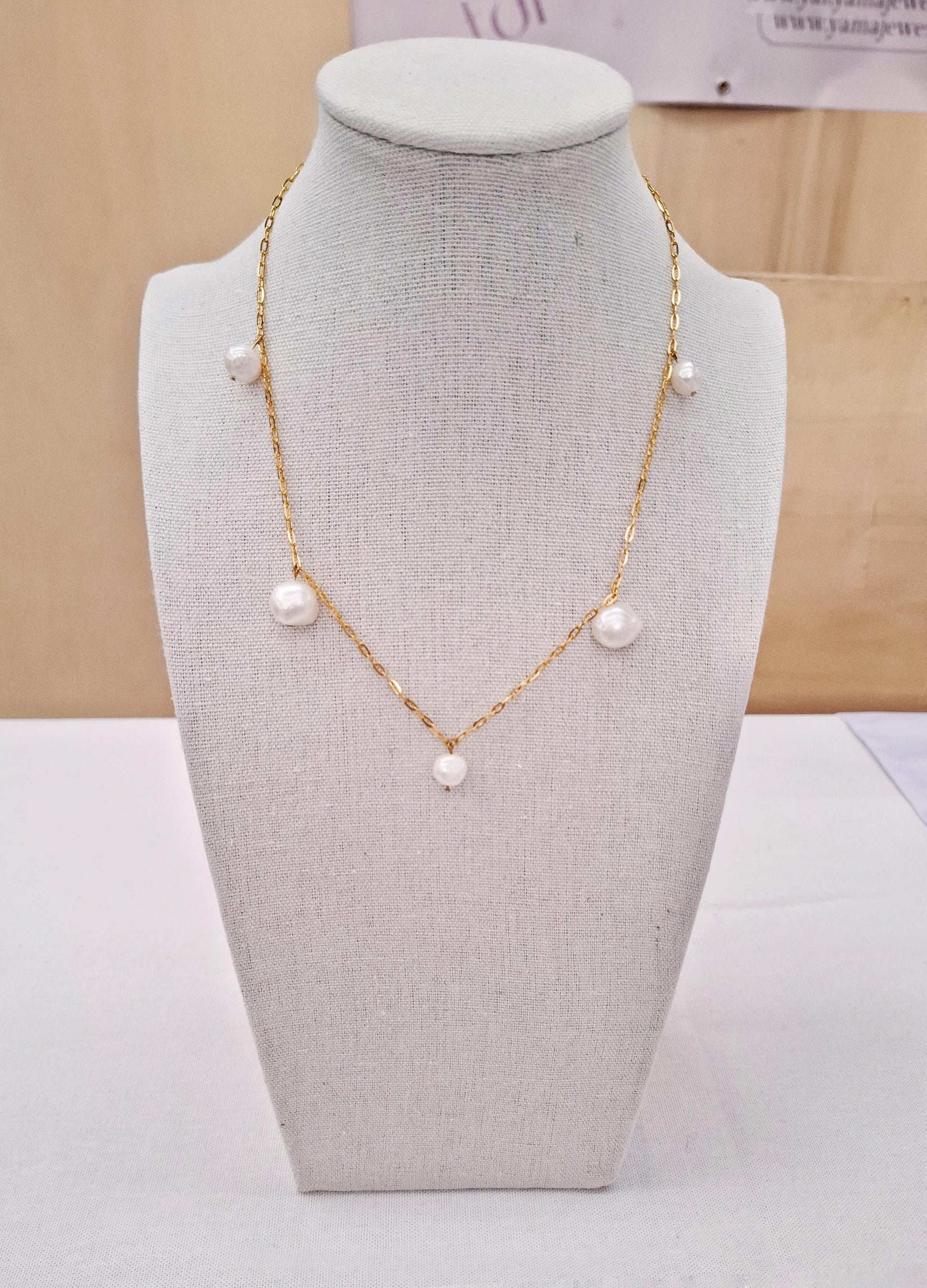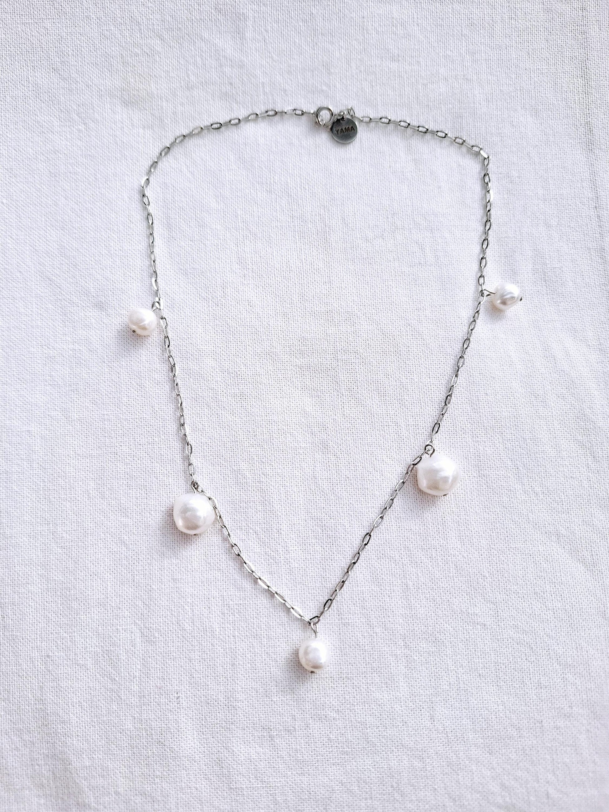 Get your hands on the Irregular necklace. It is made with natural freshwater pearls. Finished with waterproof materials. It's the ultimate piece to spruce up your outfit or to give as a gift to your gem of a friend!