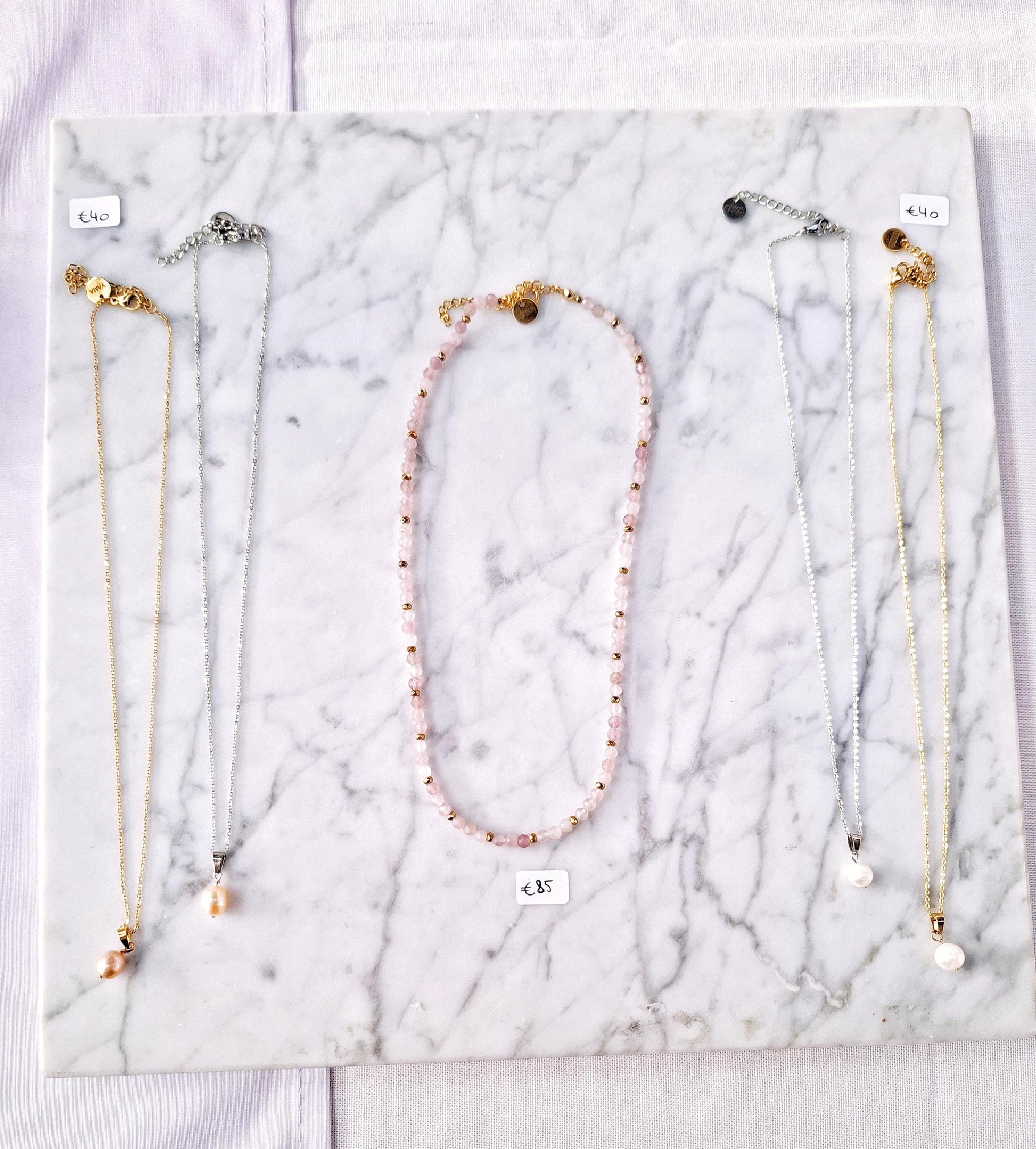 Our jewellery is crafted with natural crystals, pearls, and shells, making each piece unique in shape, colour, and size.